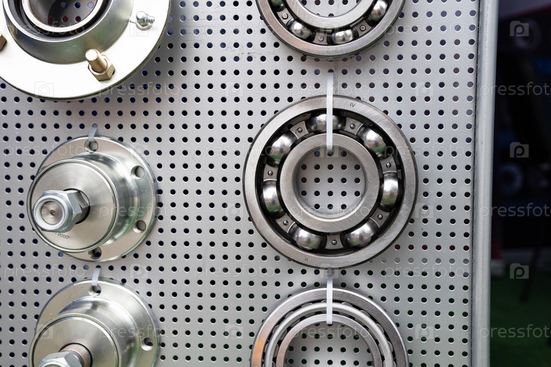 Различные подшипники на металлическом фоне. Часть механизма