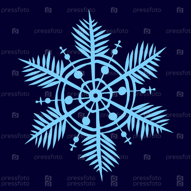 Синяя снежинка, нарисованная вручную, изолированная на белом фоне