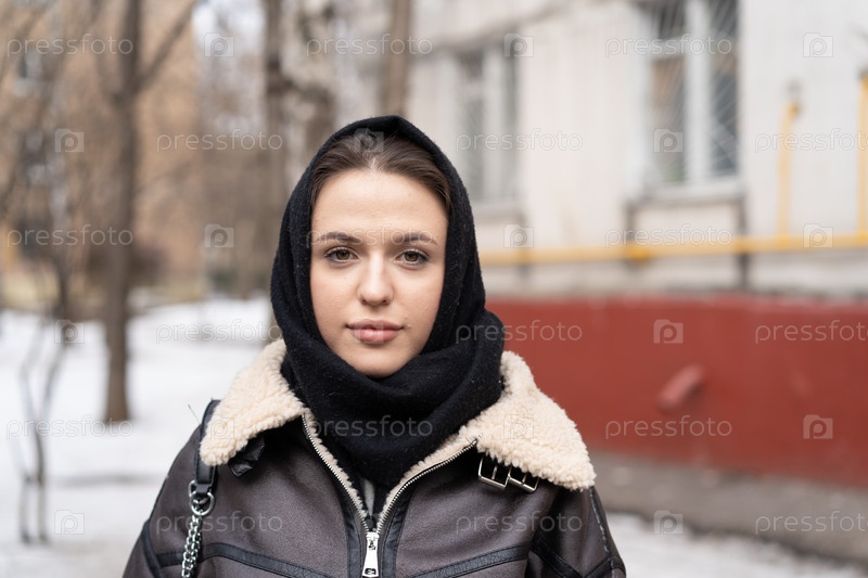 Портрет молодой красивой женщины на улице в платке