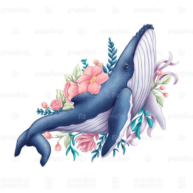 Синий кит в цветах
