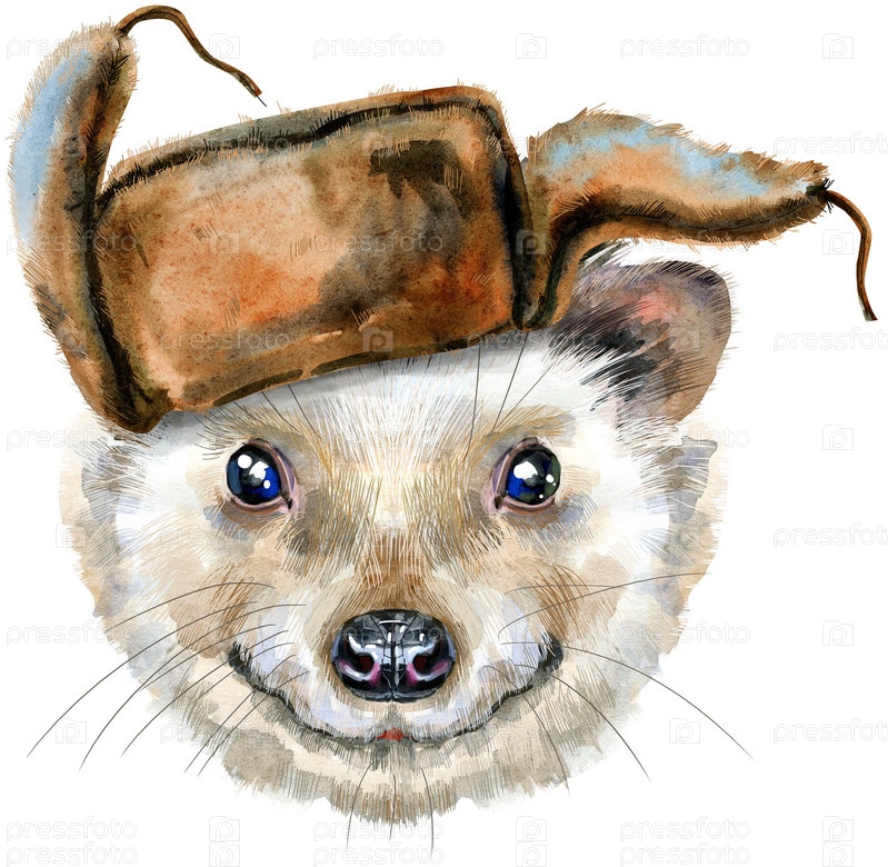 Акварельный рисунок животного - ежик в шляпе, эскиз
