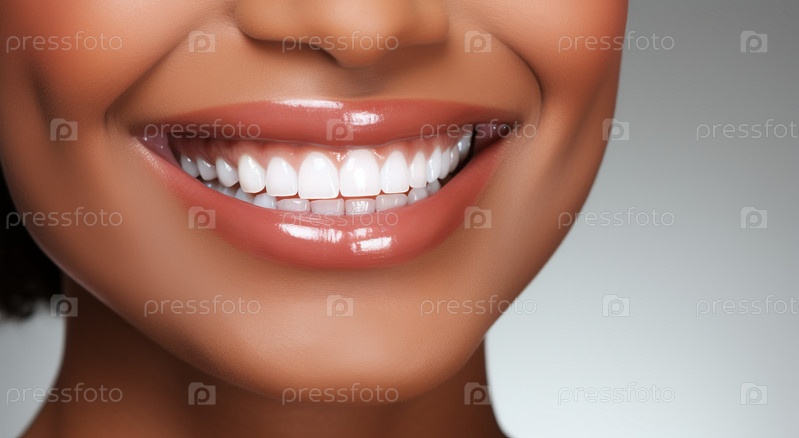 Улыбающаяся молодая красивая девушка с чистой идеальной кожей крупным планом. Концепция красоты, ухода и стоматологии