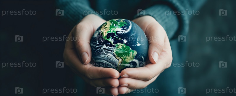Руки держат глобус стеклянной земли с полем зеленой травы сбоку на размытом светлом фоне природы, Всемирный день окружающей среды и создание зеленого чистого мира по-своему
