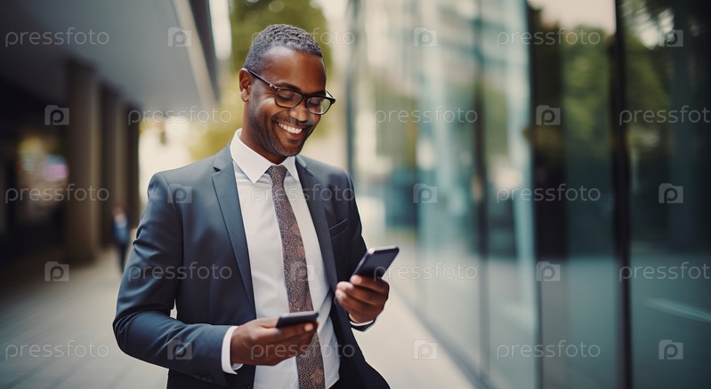 Крупный план афроамериканского бизнесмена в строгом костюме со смартфоном