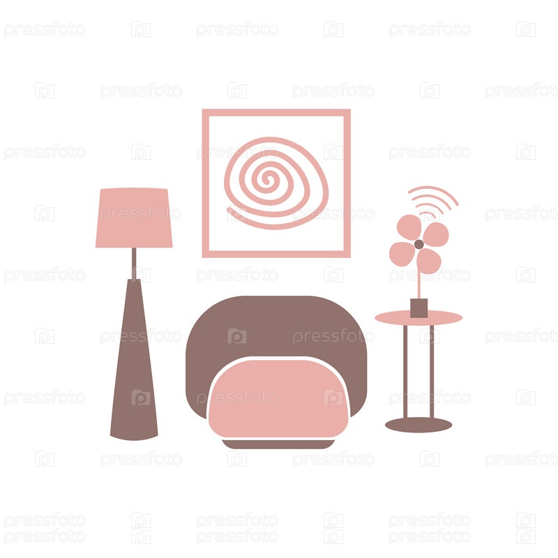 Мебельная иконка с элементами интерьера гостиной в плоском стиле