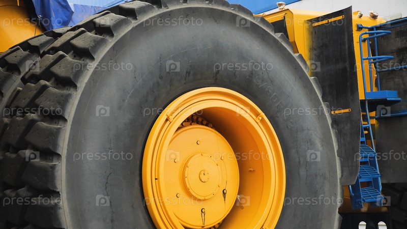 Крупный план колеса большого грузовика. Грузовая шина самого большого в мире самосвала