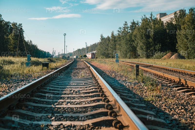 Железная дорога уходит вдаль к станции