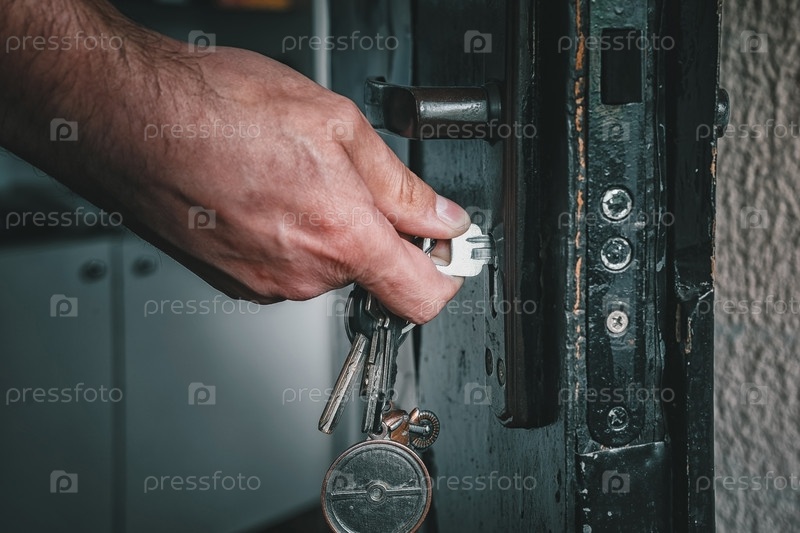 Рука открывает дверь ключом