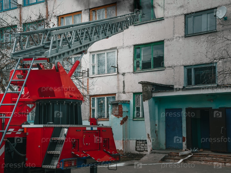 Лестница пожарной машины, доведенная до окна