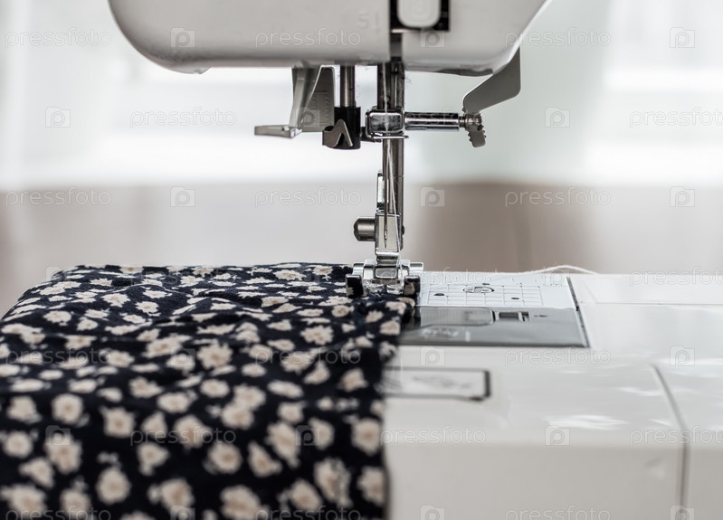 Лапка швейной машины в работе крупным планом