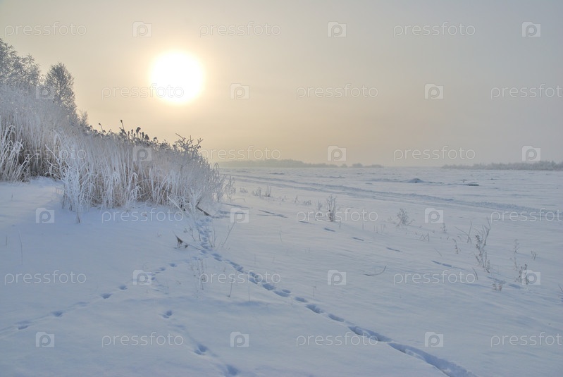 Зимний туман в окрестностях Омска, Сибирь Россия