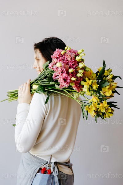 Флорист с букетом цветов