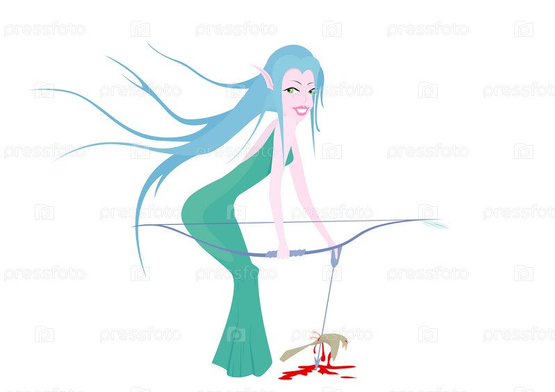 Эльфийская лучница охотится на птицу