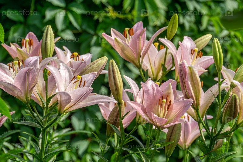Розовые лилии в саду