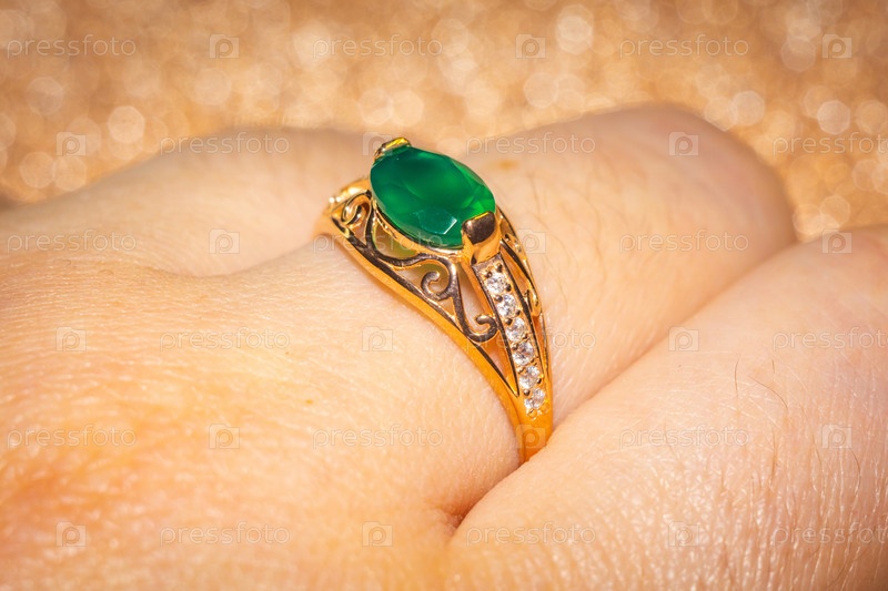 Золотое кольцо с зеленым агатом