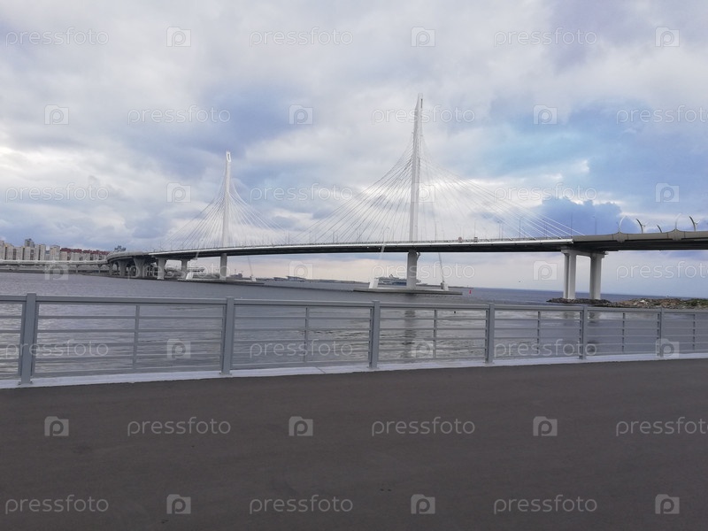 Вид на ЗСД (западный скоростной диаметр) со стороны набережной Южной дороги Крестовского острова в Санкт-Петербурге