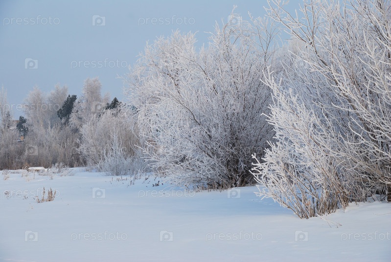 Зимний туман в окрестностях Омска, Сибирь Россия