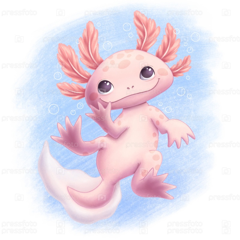 Аксолотль в воде рисунок на белом фоне