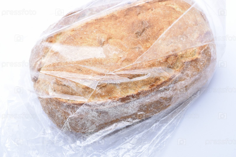 Свежая буханка хлеба в целлофановом пакете