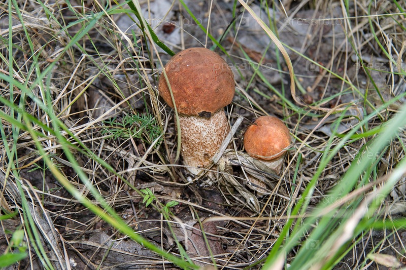 Гриб Boletus edulis, растущий в траве с осени по лето