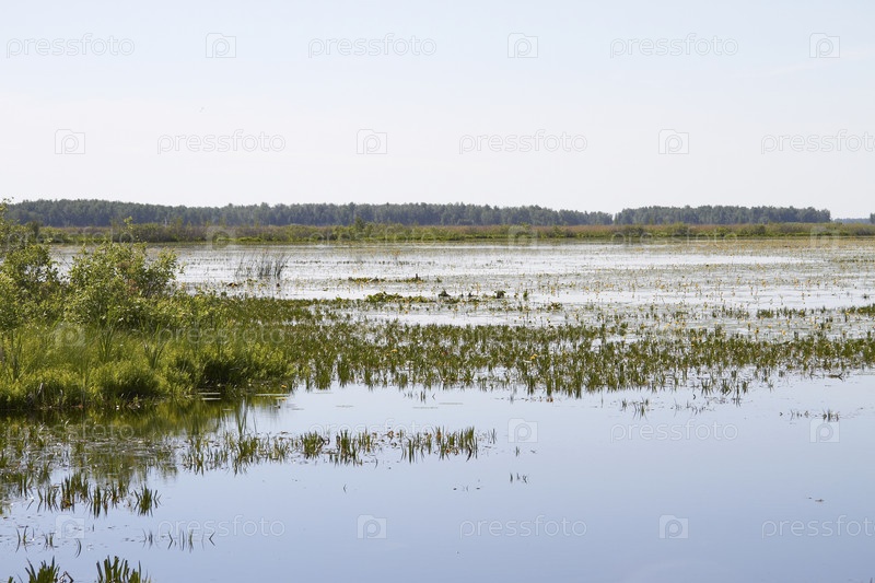 Пейзаж с изображением озера на севере России летом
