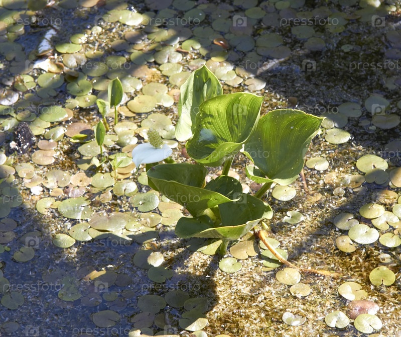 Водяной гиацинт в пруду с тенью на земле летом