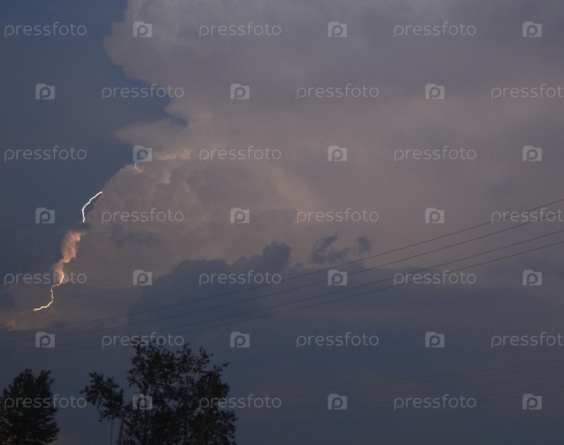 Молния в небе на закате. Гроза и молния летом