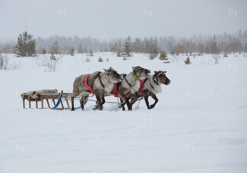 Олени в Лапландии, Финляндия. Лапландия — столица и крупнейший город Финляндии зимой