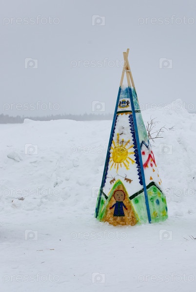 Декоративный чум на празднике оленеводов в Ямало-Ненецком автономном округе зимой
