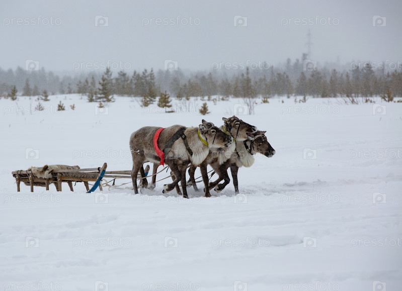 Олени в Лапландии, Финляндия. Лапландия — столица и крупнейший город Финляндии зимой