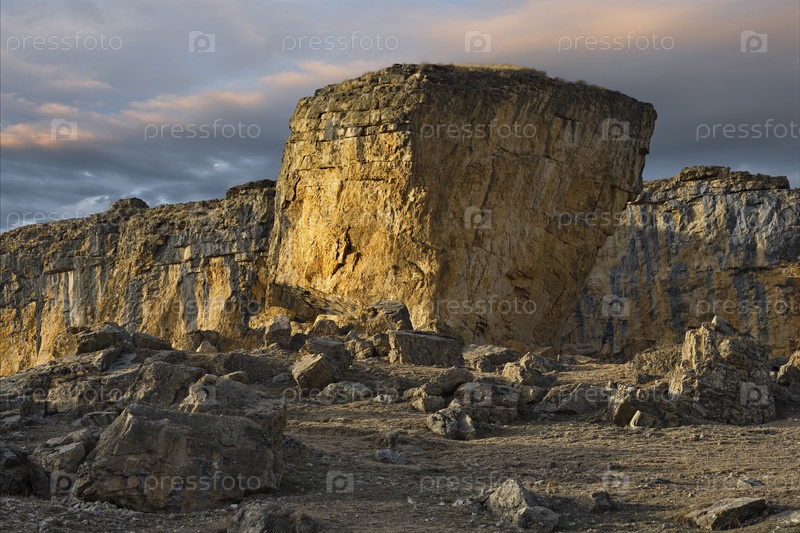 Цада. Россия. Вид на развалины высокогорных скал Кавказа возле поселка, в котором родился великий поэт Дагестана Расул Гамзатов
