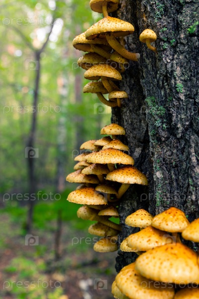 Грибы, растущие на деревьях группами