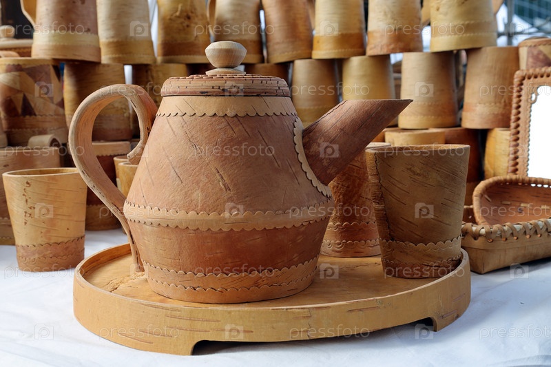 Берестяной чайник и чашки. эко-посуда. ярмарка товаров ручной работы
