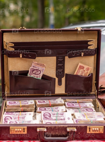 Полный чемодан старых советских денег. Винтаж. Ретро. Банкноты с изображением В. И. Ленина. Банкноты СССР. Чемоданчик, полный старых советских денег. Винтаж. Ретро. Банкноты с изображением В. И. Ленина. Банкноты СССР