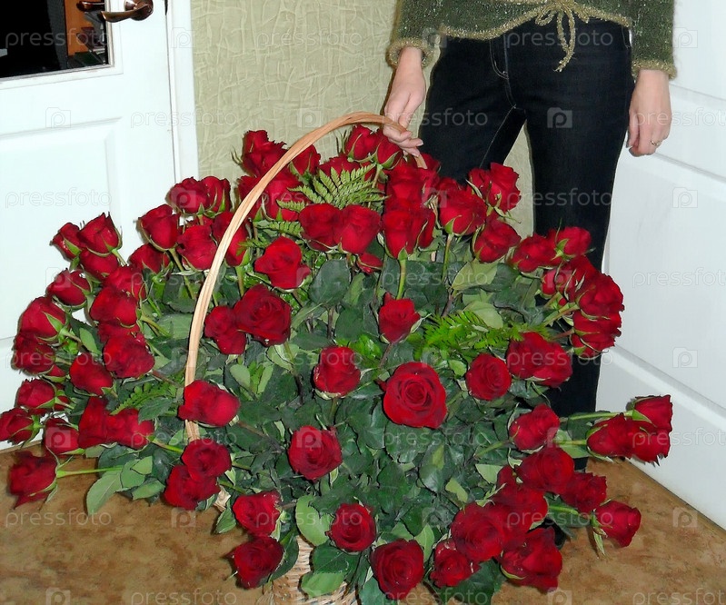 Корзина красных роз