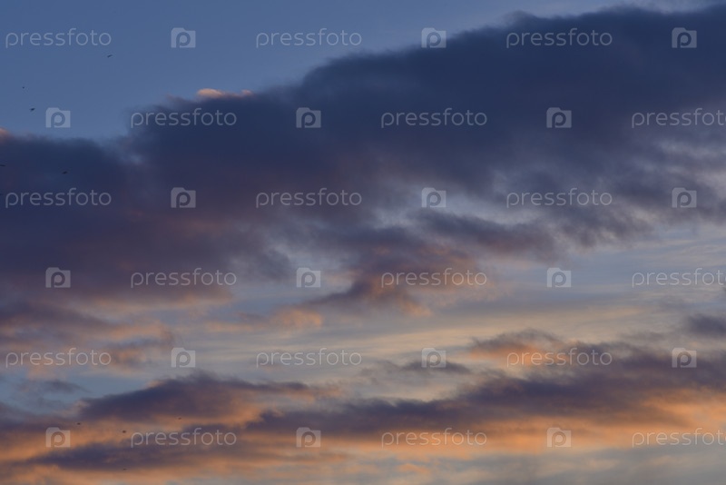 Вечернее закатное небо. В небе темно-синие желтые облака