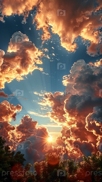 Красивый закат осветил белые облака, раскрасив их в разноцветные цвета