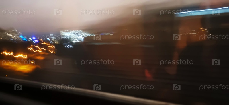 Концептуальный снимок световых дорожек из окна движущегося поезда. Абстрактный