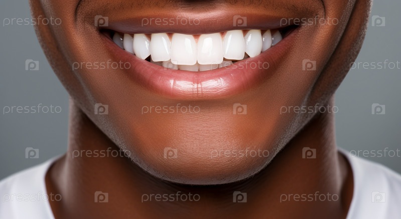 Крупным планом студия сняла африканского парня, указывающего пальцем на белую блестящую зубастую улыбку