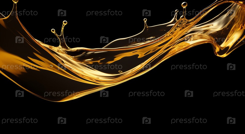 Снимок крупным планом, запечатлевший момент брызг золотого масла, создающий поразительный визуальный эффект