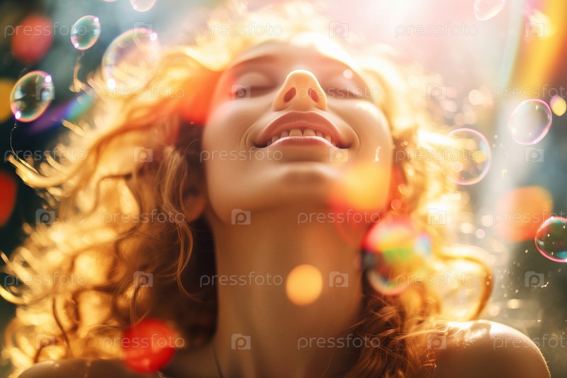 Подросток надувает переливающиеся пузыри на открытом воздухе, создавая причудливую, мечтательную атмосферу
