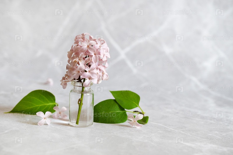 Вид спереди букета сиреневых цветов в керамической вазе на деревянном садовом столе на фоне размытой открытой террасы в солнечный день