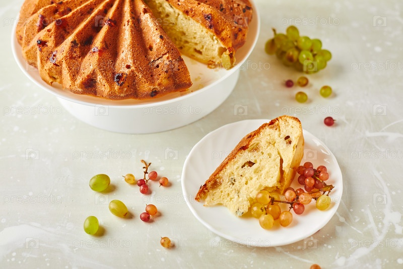 Вкусный домашний виноградный бисквит с благородным сыром с плесенью на каменном фоне