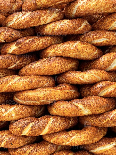 Традиционные турецкие симиты, крупный план, текстура, фон, Стамбул, Турция