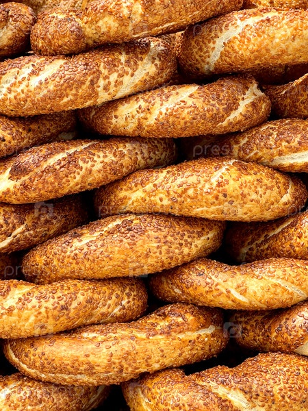 Традиционные турецкие симиты, крупный план, текстура, фон, Стамбул, Турция