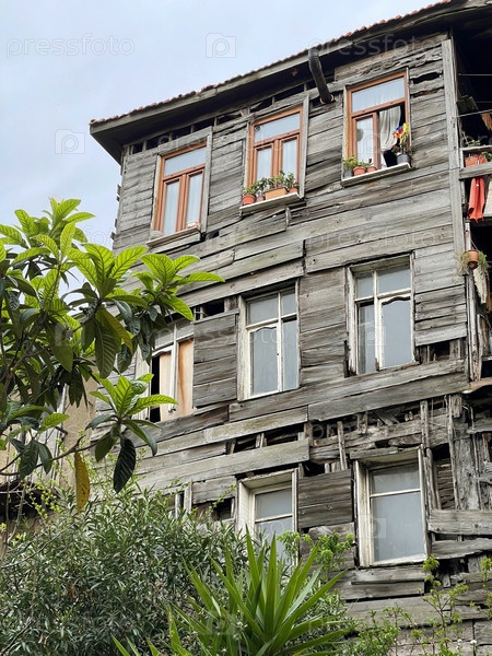 15 апреля 2023 г. - Стамбул, Турция: Городская жизнь, Старый деревянный полуразрушенный дом, но все еще жилой дом