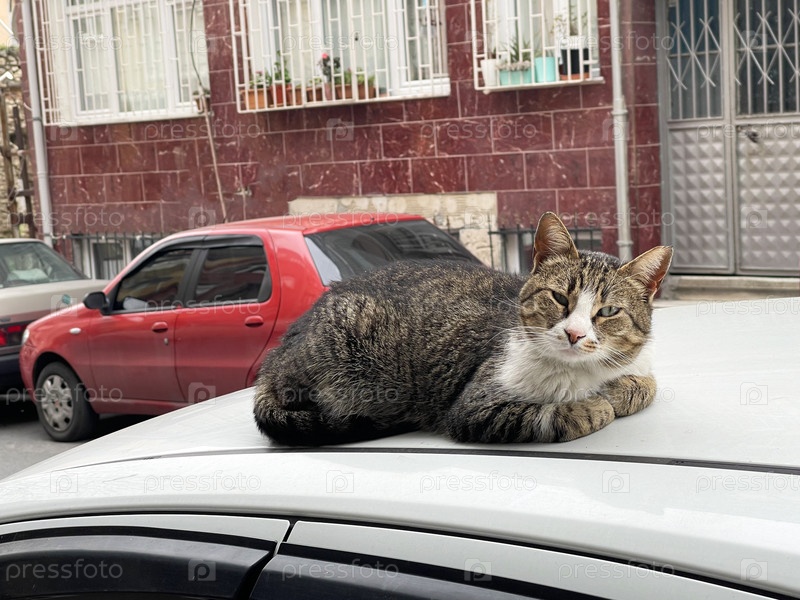 Кот лежит на крыше автомобиля, Стамбул, Турция