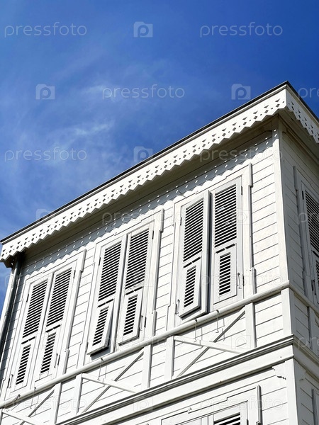 Белый деревянный дом на фоне голубого неба. Принцевы острова недалеко от Стамбула, Турция