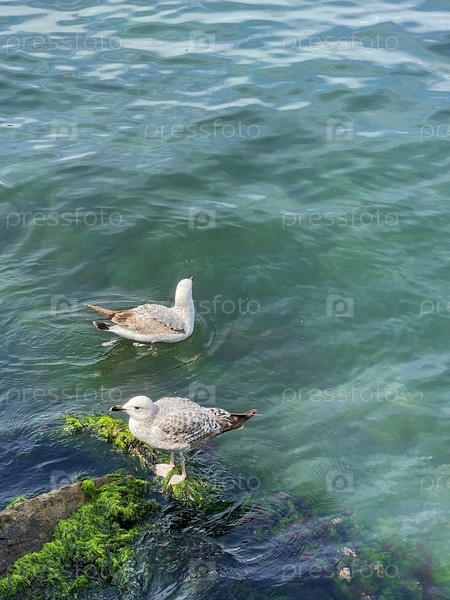 Чайки в море у берега
