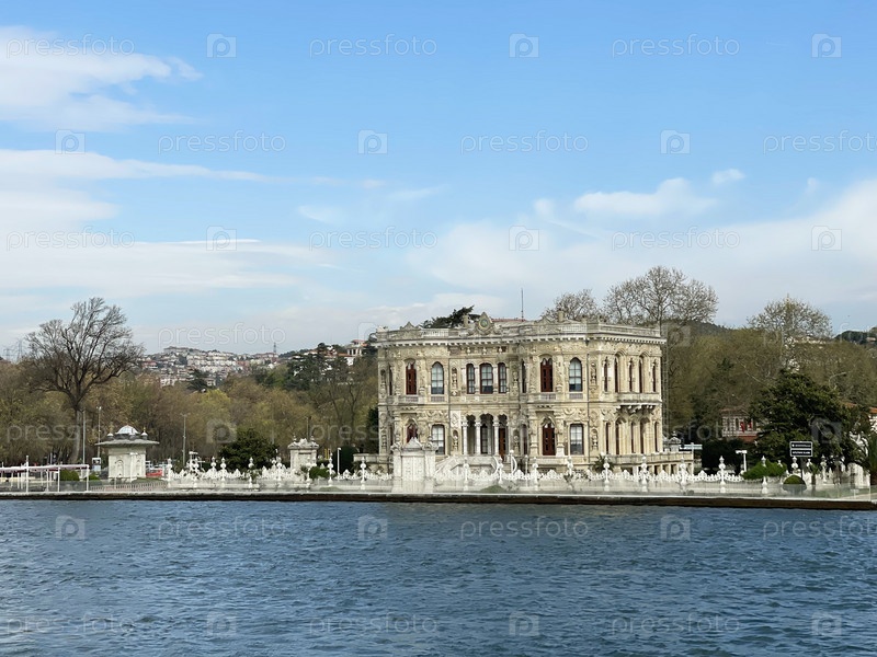 17 апреля 2023 г. - Стамбул, Турция: Вид на азиатскую часть Стамбула через Босфор. Дворец Кучуксу Касри